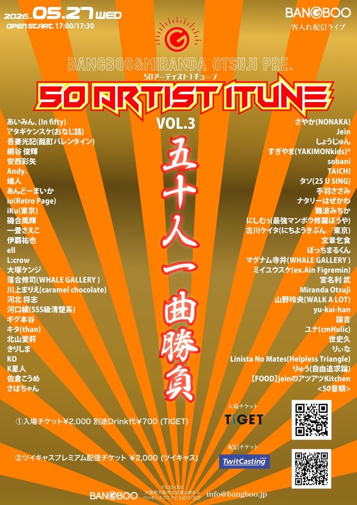 会場販売:無 (問)梅田BANGBOO info@bangboo.jp 06-6867-7828