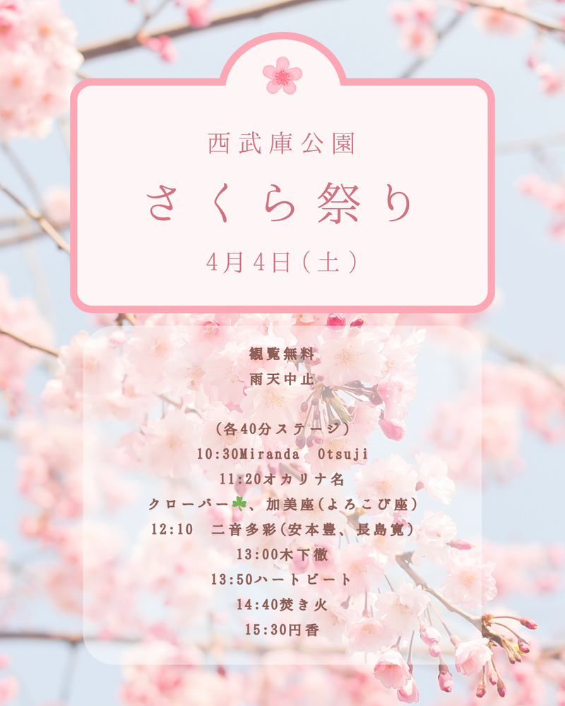 西武庫公園で「さくら祭り」が開催されます! 特設ステージでのライブパフォーマンスも必見です✨